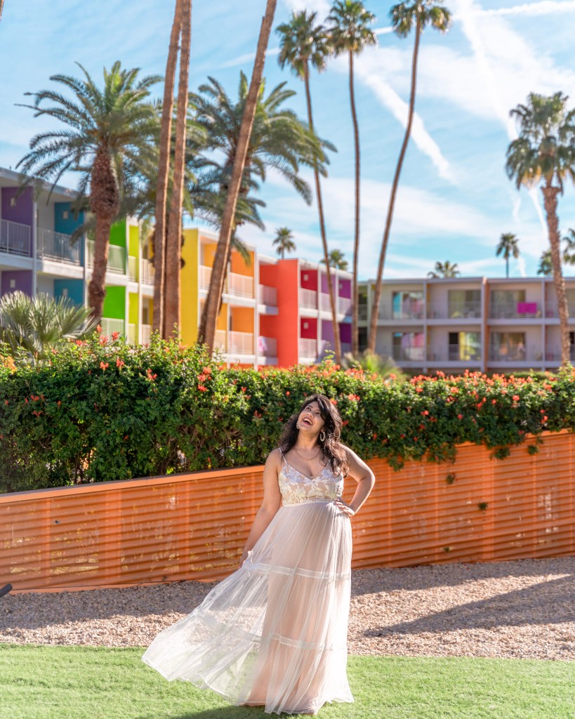 Where did we stay: We stayed at the Saguaro hotel in Palm Springs, As you all might know by now, I (Gurneha) I love colors and saguaro hatel was very colorful and a truly refreshing take on how even simplest of hotels can be made exciting. And the best part is this hotel has a swimming pool with a mountain backdrop, we loved spending our day early mornings & evenings by the pool swimming and chilling